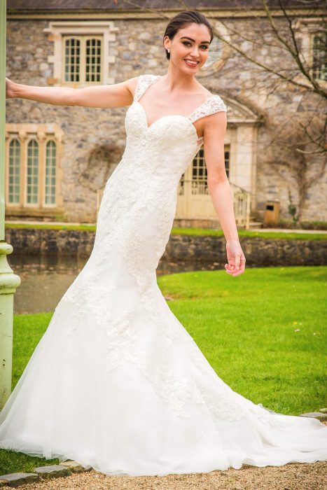 This sweetheart neckline flows seamlessly into a beautifully embroidered and hand beaded, tulle dress. Tie back. Ivory Champagne, ivory or white. Prices for the Romantica 2017 collection range from £599-£1099